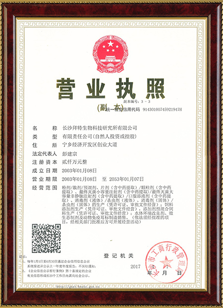 我公司被評(píng)為中國獸藥制劑30強(qiáng)企業(yè),并擔(dān)任中國口蹄疫學(xué)會(huì)常務(wù)理事會(huì)單位、湖南省動(dòng)保協(xié)會(huì)副理事長(zhǎng)單位、湖南省養(yǎng)豬協(xié)會(huì)副會(huì)長(zhǎng)單位等職務(wù).同時(shí)還被授予高新技術(shù)企業(yè)(編號(hào)為GR201243000183)、湖南省質(zhì)量信用等級(jí)A級(jí)企業(yè)、長(zhǎng)沙市企業(yè)技術(shù)中心。